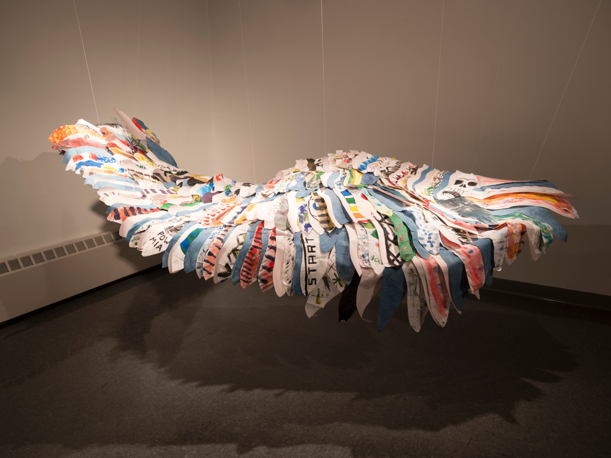 In the workshop, working with storytelling and creating the textile installation provided participants with a shared forum for their stories. Using words made it easier to share a story about one’s life, and processing feathers and sewing a wing gave a collaborative effort where everyone’s contribution counted. Sometimes, art can provide tools for processing and thinking about your life, as well as sharing it with a community.