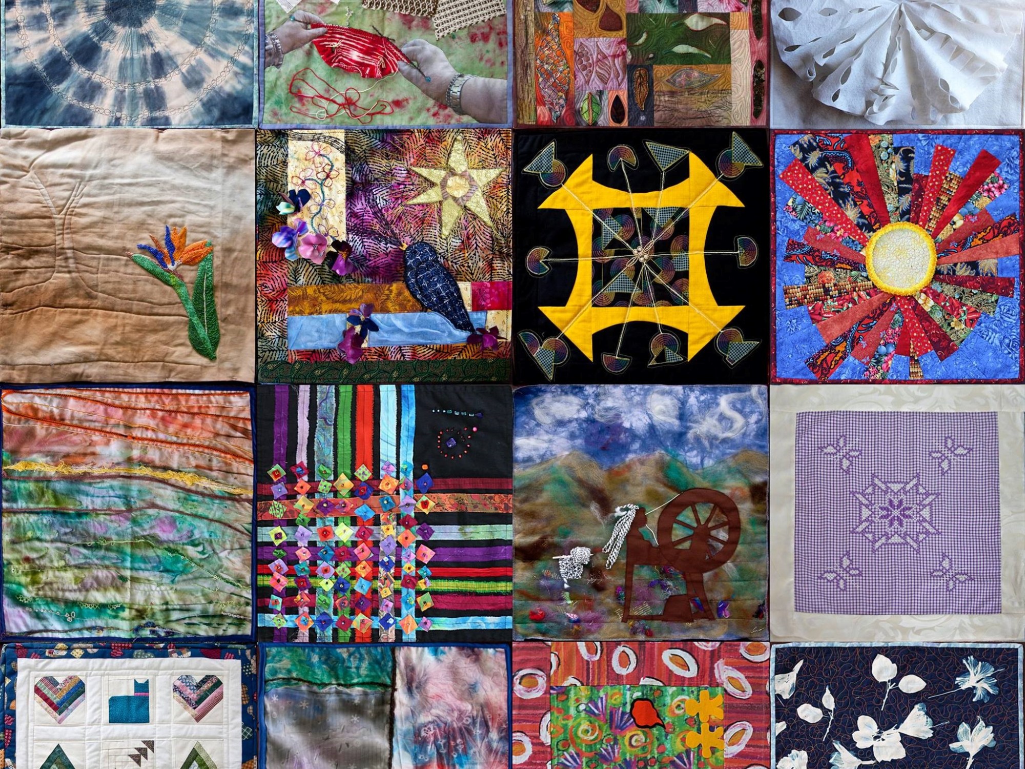 This collaborative installation was created by artists from peripheral communities worldwide. The final global artist collaboration of 2017, facilitated by Satu Miettinen from the Margin-to-Margin project, consisted of seven collaborative textiles, each measuring an impressive two by two meters. An artist community from the Murmansk State University in Russia, ArtsUp artist collective from Streaky Bay in South Australia, Fibrespace Incorporated from regional South Australia, two artist communities from the University of Namibia, two artist groups from the University of Lapland, and one artist group from China produced works for the installation.