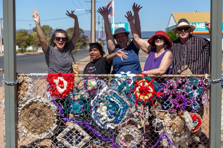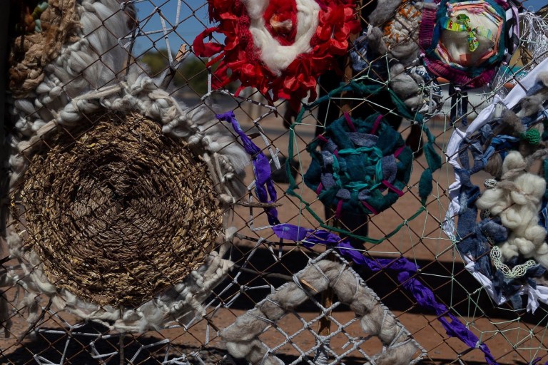 It was wonderful to continue our margin-to-margin collaboration with Bridge to Nowhere Arts Association in Port Pirie, Australia. Researcher and artist Melanie Sarantou initiated this contact some time back through workshop and discussions about the dreams and future orientation that Bridge to Nowhere Artists were thinking about. This took place through face-to-face meetings and a Facebook thread, continuing into a workshop where mandalas of life were woven into an old gate, which received a second life through an international artists’ collaboration. The artists’ association had prepared natural and textile materials that could be woven into the gate. Me, Melanie and artist Sherrie Jones collaborated on gate project with the association. Our collaboration with Sherrie had started already way back in Fowlers Bay and in Helinä museum with workshops and exhibitions.