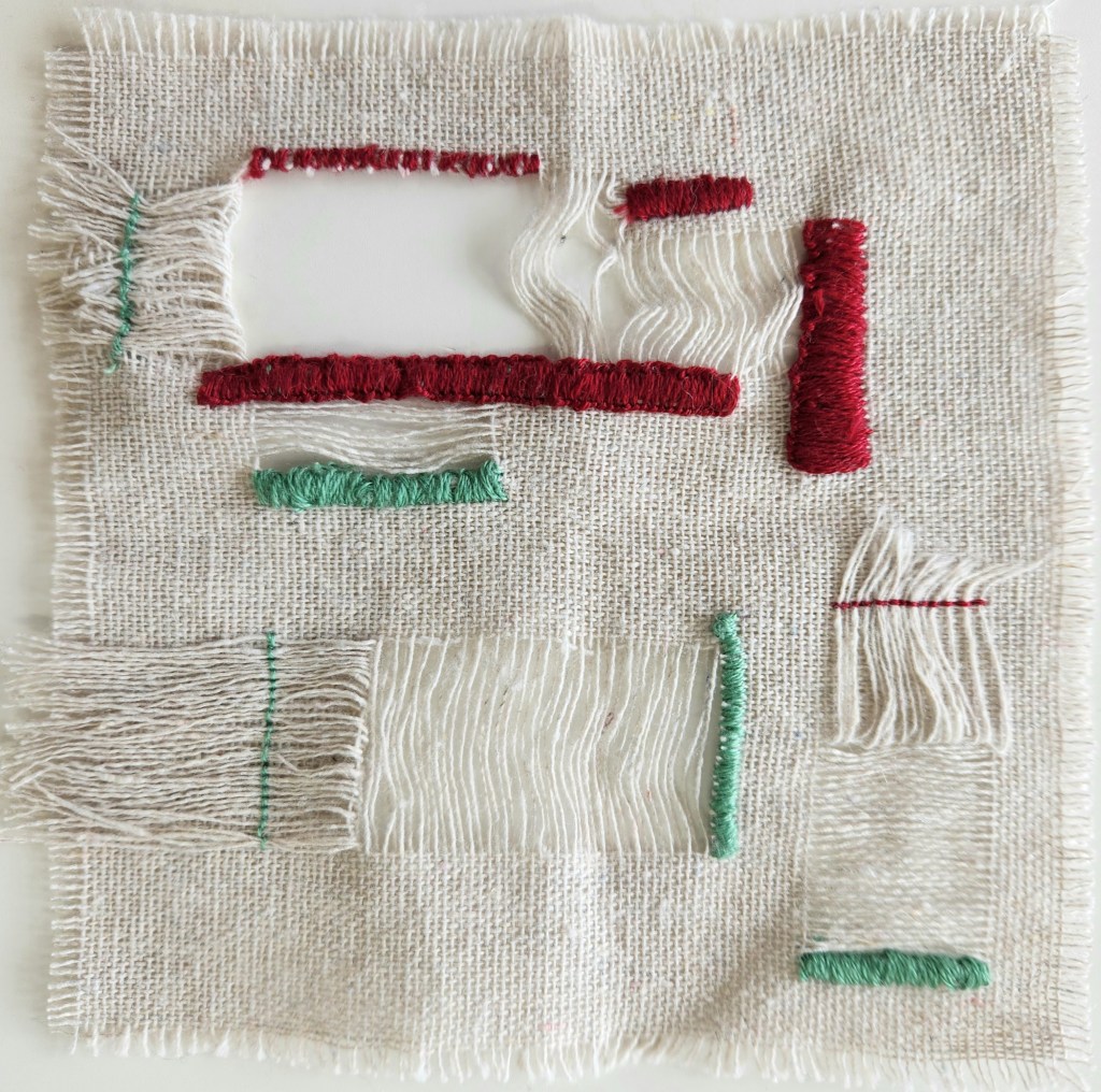 During the two-day excursion, those who wanted to use textiles and thread as a reflective practice created the following miniature embroideries as part of the Textiles Cartographies initiative. These textiles were sent to the Bridge to Nowhere Arts Community in Port Pirie, South Australia, as a gesture of gift-giving and sharing of stories.